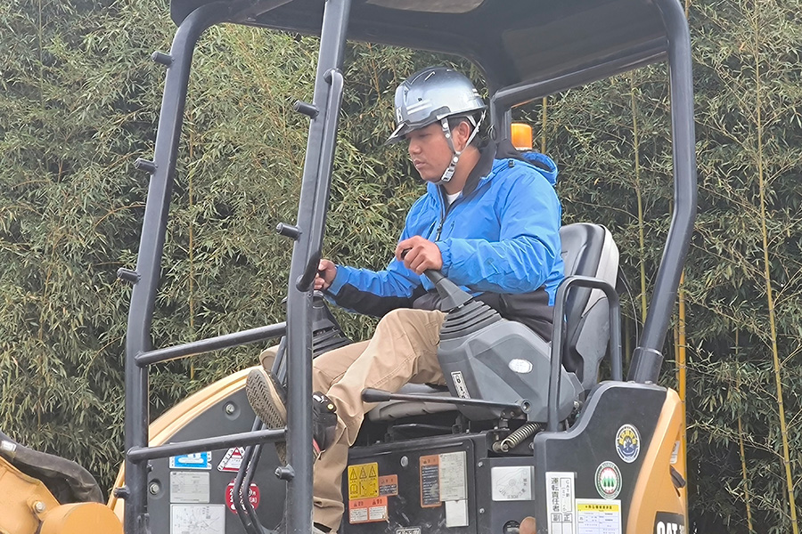 技能実習の到達目標の一つに、重機操作の習得があります。同社では、重機の資格試験に向けて事前学習、社内の練習場での実地練習、筆記試験対策をセットで実施しています。