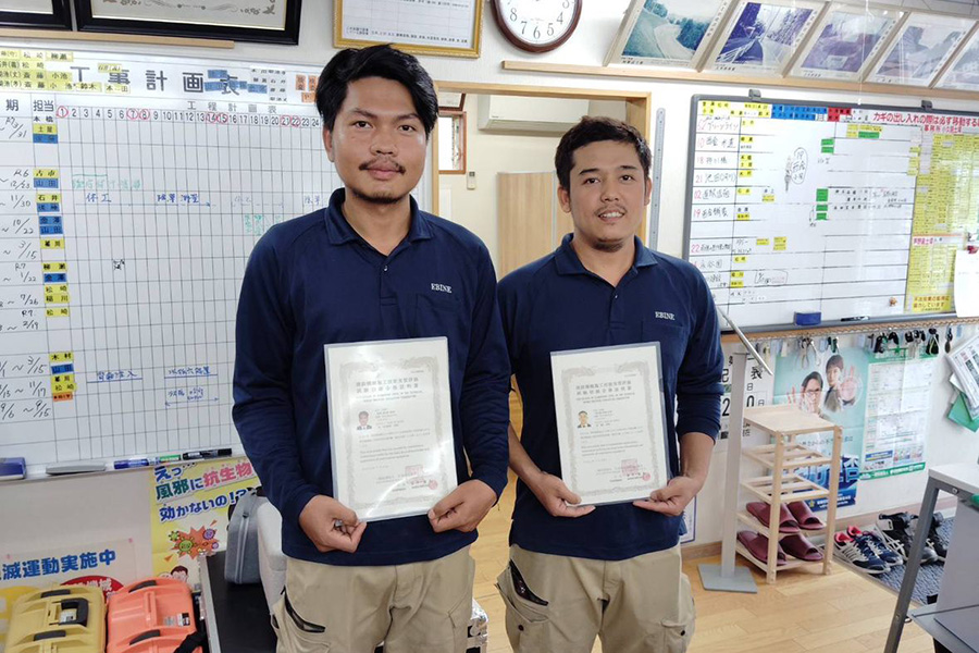 「重機の試験があるのですが、事前に学習してから連れて行きますので、今のところ、全員一発合格しています。」