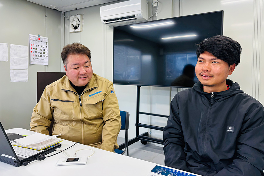 同社が外国人材の受入れにおいて重視しているのは、「重要なことは必ず通訳を介して伝える」という原則です。翻訳アプリの限界を現場で痛感したことが、その出発点でした。通訳を軸にしたコミュニケーション体制から安全教育、生活支援、評価制度まで、同社の取組を取材しました。