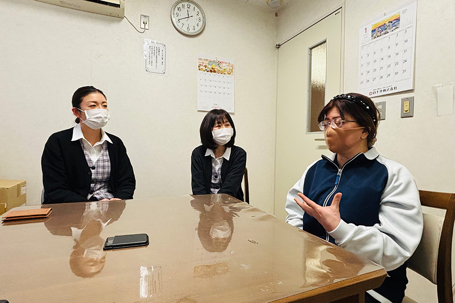 日常のコミュニケーションについて、担当者は「全く通じませんっていう感じではないので、こちらも助かってるんですけど」と話しています。電話対応も含め、日本語での基本的な意思疎通は可能な状態です。現場では日本人職員と外国人材が教え合いながら業務を進めており、オンライン学習の際にはスタッフが補足説明を行っています。